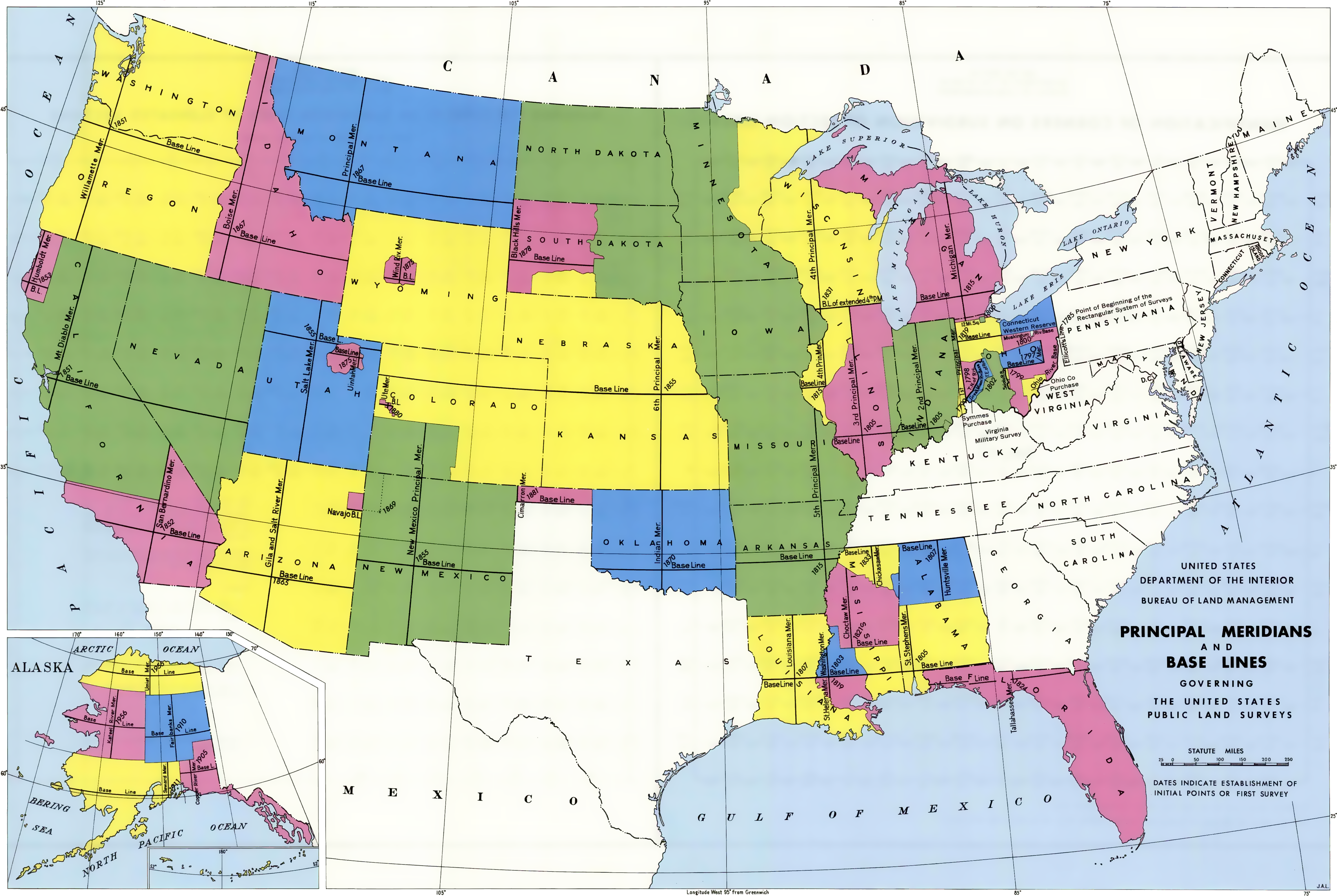 The land area that is now known as the State of Wisconsin was surveyed by the federal government between 1833 and 1866. The survey was done in order to divide the vast public domain into salable-sized lots that could be sold, or otherwise divested, to raise funds for the federal government and to encourage settlement. The work was done using the Public Land Survey System (PLSS), which divides land into six-mile square townships and one-mile square sections. This system was used in surveying the public domain lands of the United States beginning in eastern Ohio in 1785. The survey work was done by the General Land Office (GLO), an agency of the Treasury Department until 1849 and thereafter a part of the Interior Department. In 1946, the GLO was merged with the Grazing Service to create the modern Bureau of Land Management (BLM), which continues to have responsibility for the Public Land Survey on public domain lands. The original surveys are often referred to as the Public Land Survey or the General Land Office Survey.